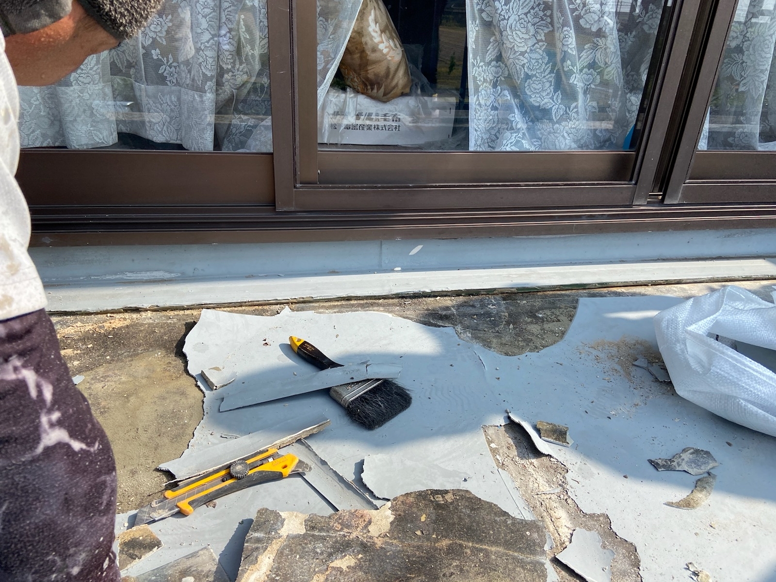 ↑防水材の接着を高めるため、プライマー塗布しています。