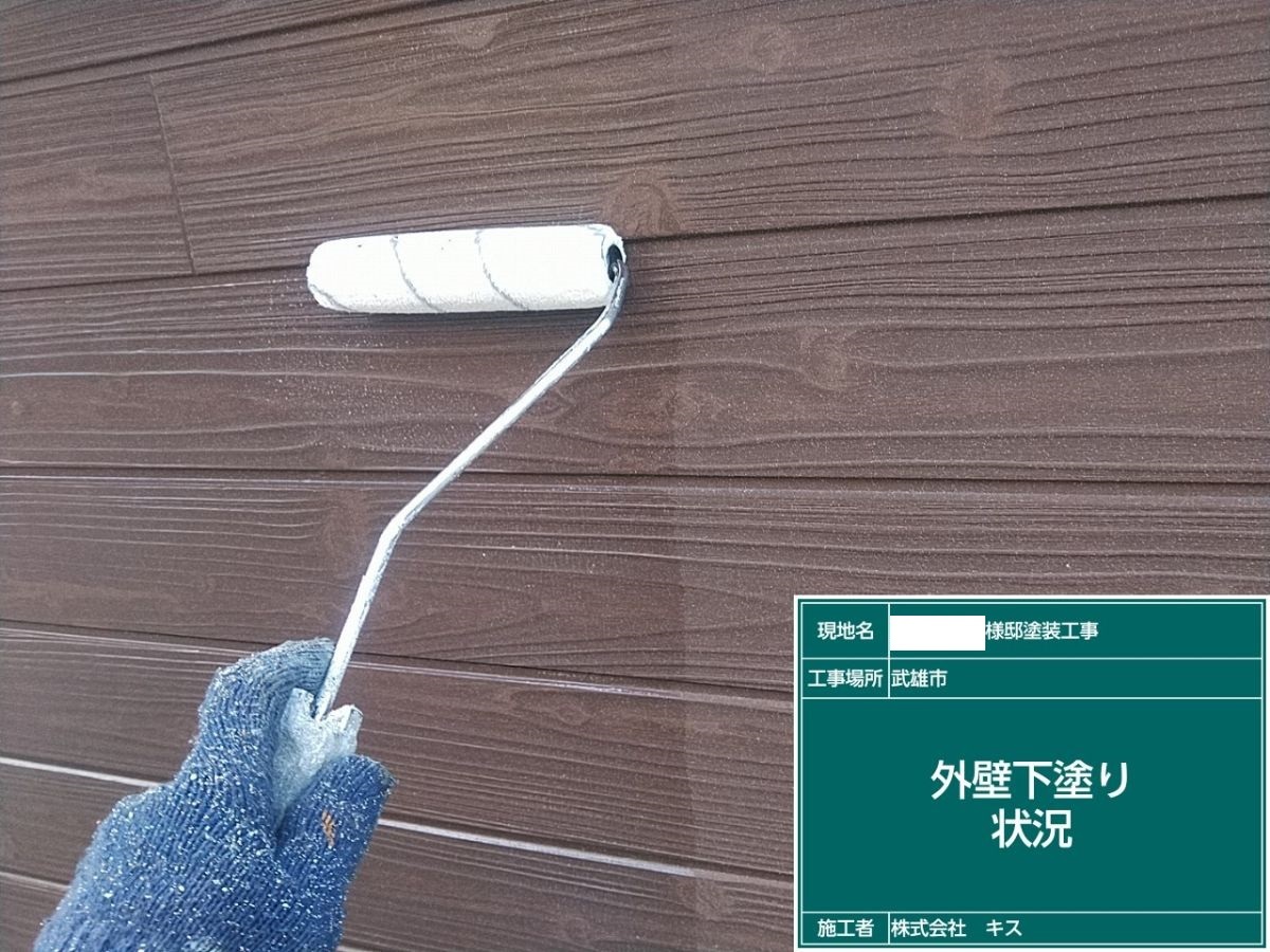 武雄市Y様邸プラチナリファイン2000MF-IRにて外壁デザイン塗装の様子