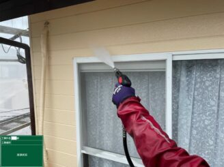 現場調査時に、外壁塗装部分のチョーキング現象があった箇所は丁寧に高圧洗浄を行い、下地処理から順番に行いました!