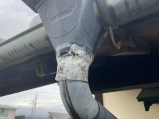 サイディングボードに発生したひび割れ(クラック)は新規シーリングを充填致しました!現場調査時に腰壁木部類の色褪せ、コケ発生、ボードのチョーキング現象、シーリングの破断、樋(とい)の破損が見られました。