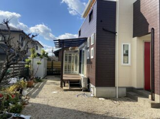 また鳥の被害も相談にありましたので、鳥除け対策も行いました!YKKのパーゴラも合わせて南面に設置を行いました!Y様の相談内容として、@シーリングの劣化A北面の変色が主な相談内容でした。屋根はガルバリウム鋼板のため、適切な下地処理を行い塗り替え工事を行っていきます。宜しくお願い致します。