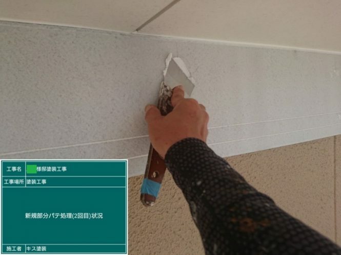 北面一部ボードが雨漏りで破損していました張替えて工事いたしました、弊社は必ず補修修復し施工します。