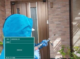 外壁は弊社が得意とするデザイン塗装にて行いました。バルコニーからの雨漏りに困っておられました。新築から22年弊社が解決致します!