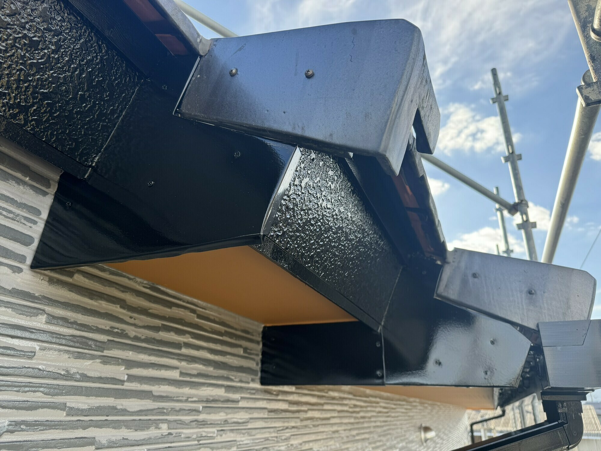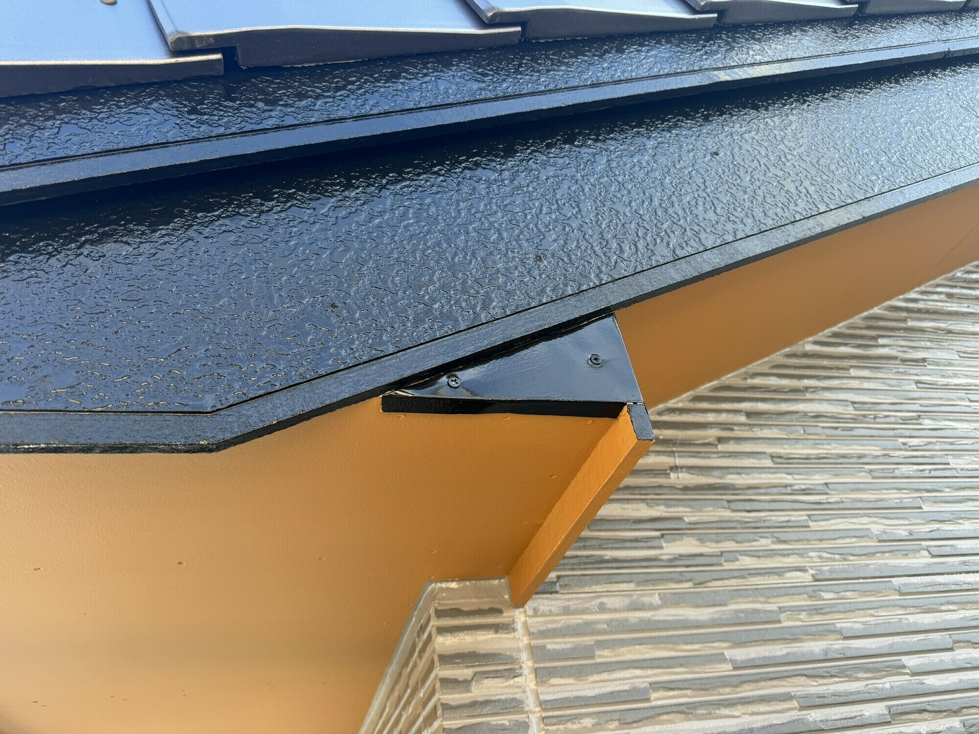 破風はガルバリウム鋼板を用いた板金巻き工事を行いました。