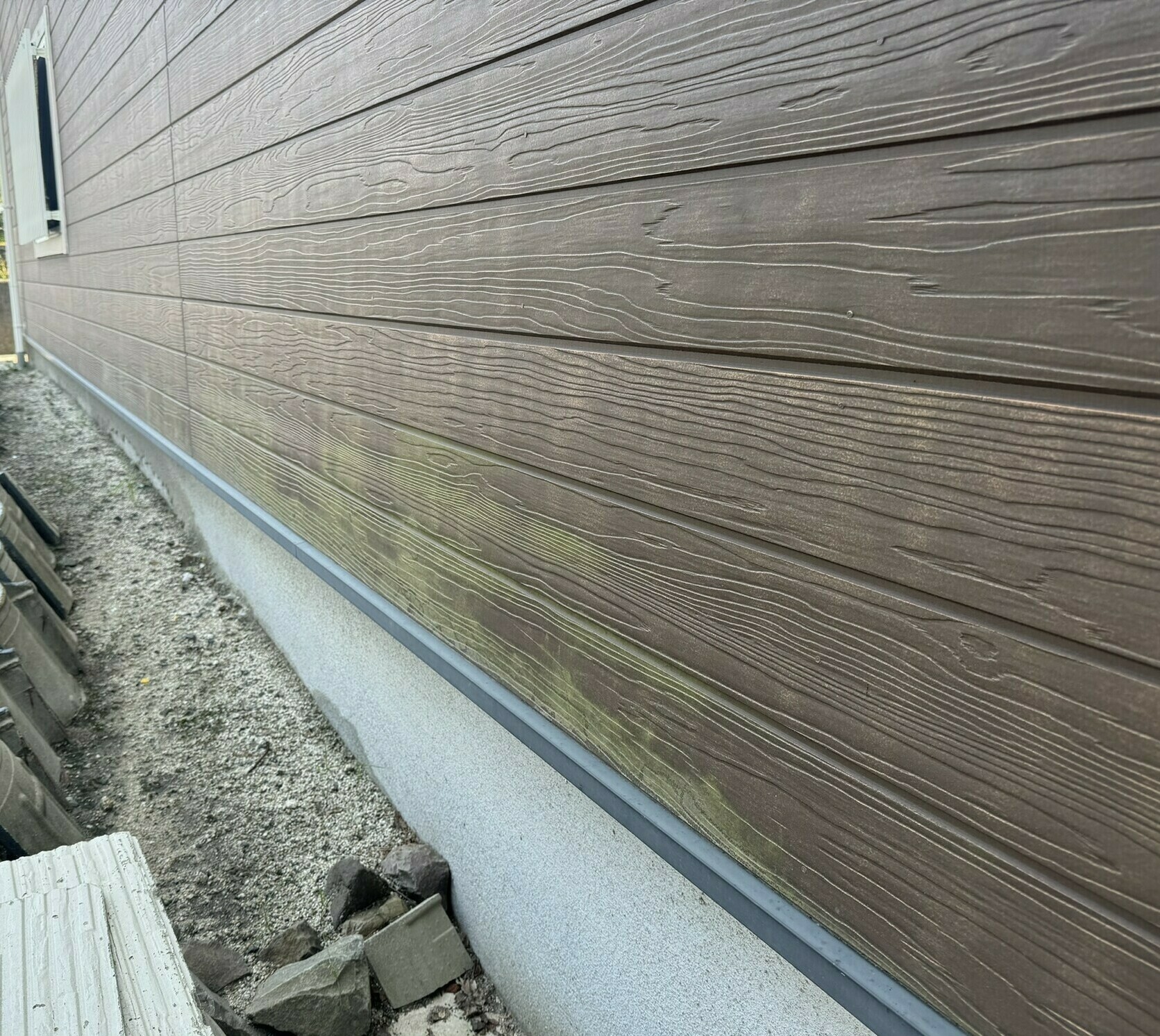 湿気が残りやすい北面の外壁にはコケが発生していました。