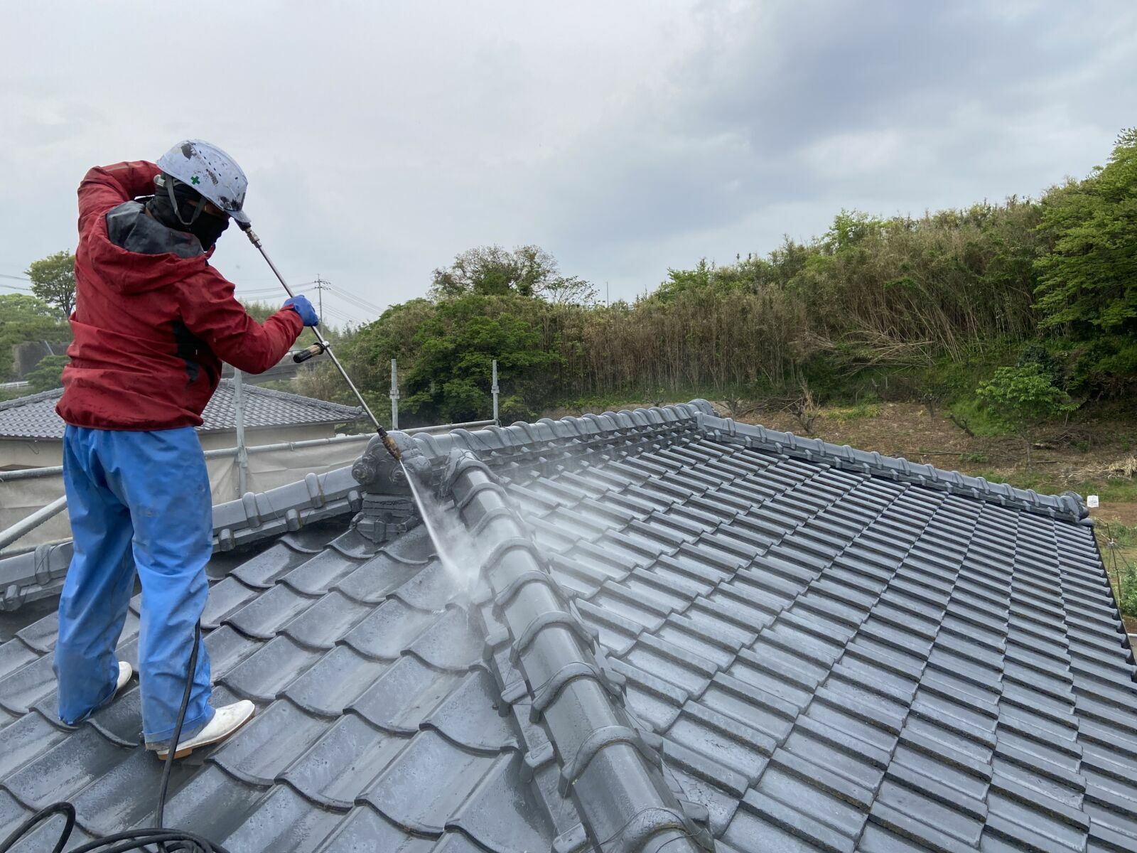 屋根の清掃と一緒に行う場合は、先に屋根を終えてから外壁に移ります。