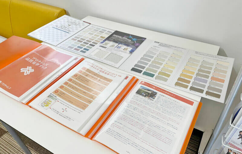昨今は様々な塗料があり、塗料によって性能も異なります。パンフレットやサンプルでオススメの塗料の製品情報や仕上がりの出来栄えを確認できます。